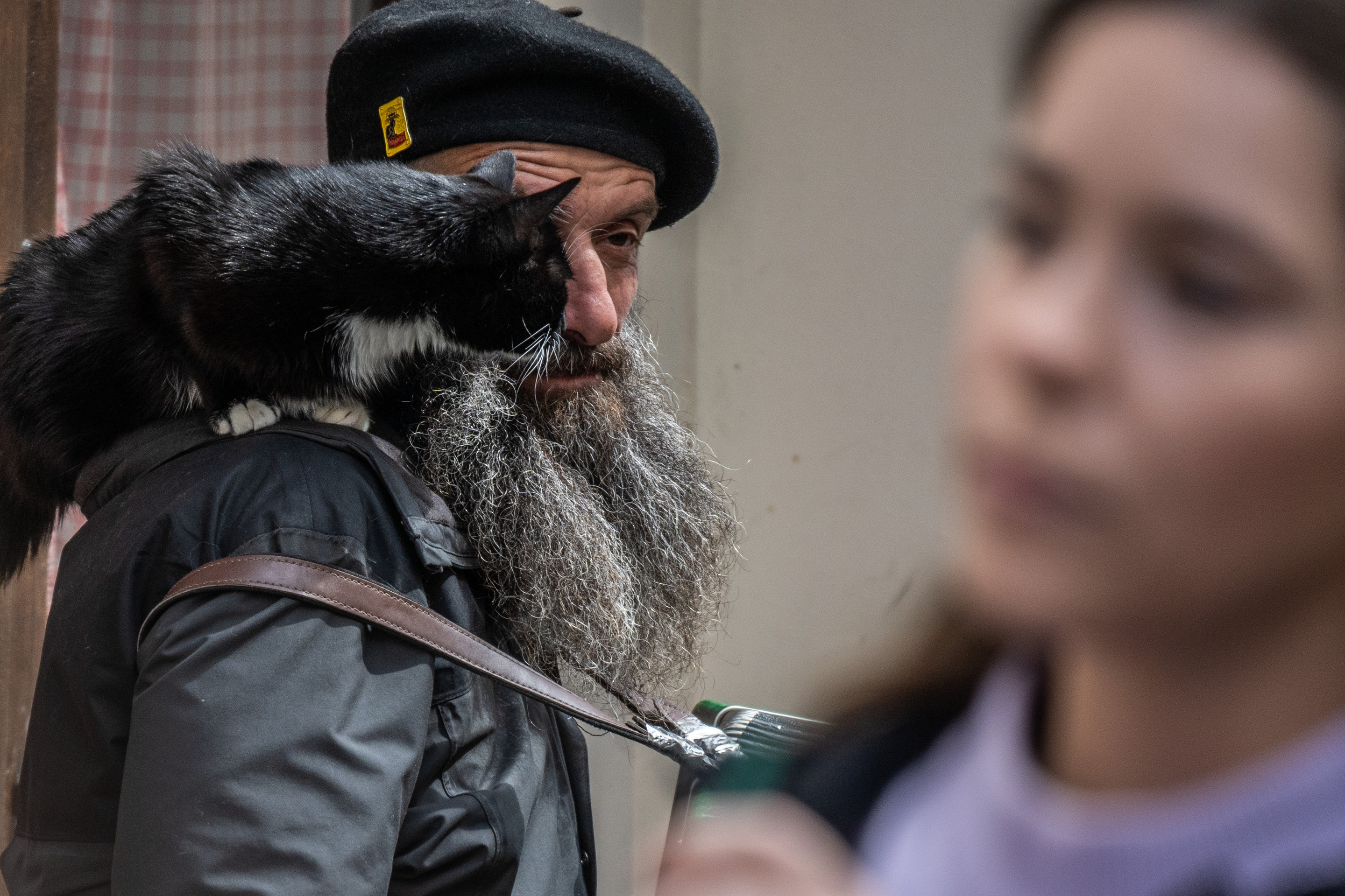 En stark karaktär som satt och spelade dragspel på en liten turistfylld gata strax bakom Sacré Coeur. Katten, som såg ut att helt frivilligt sitta stilla på hans axel, och spelemannen tycktes båda ha örnkoll på alla som hastade förbi.
