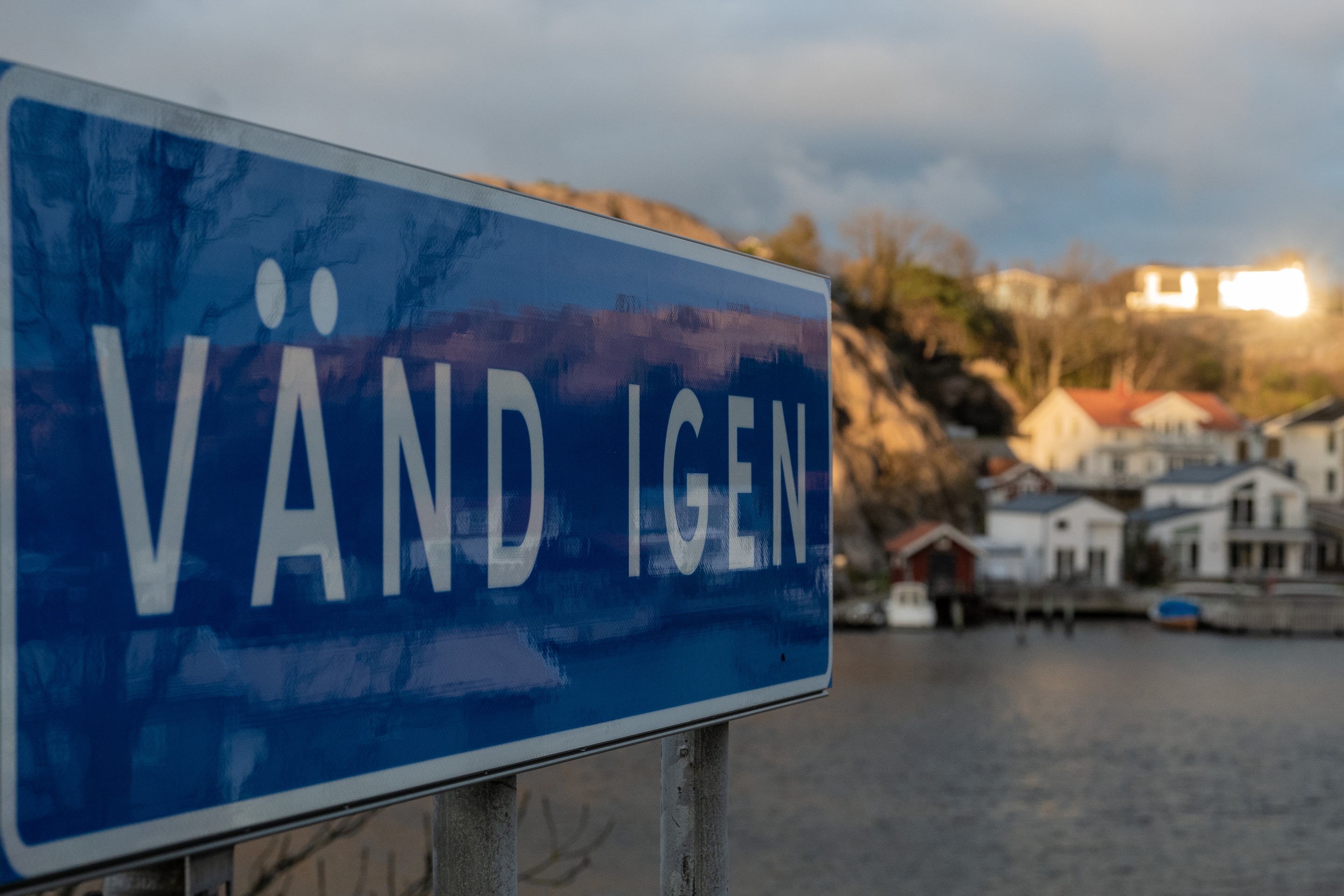 Slutet på vägen norrut på Hamburgö är en vändplats som heter Vändigen.