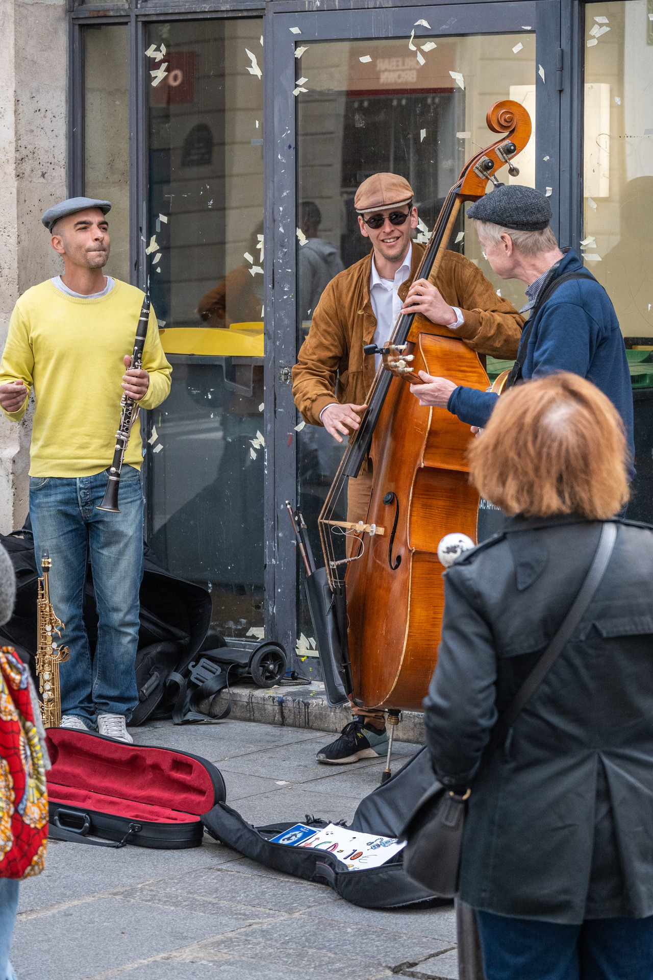 Denna glada trio stötte vi på på en liten gata under vår promenad ner mot Notre Dame.