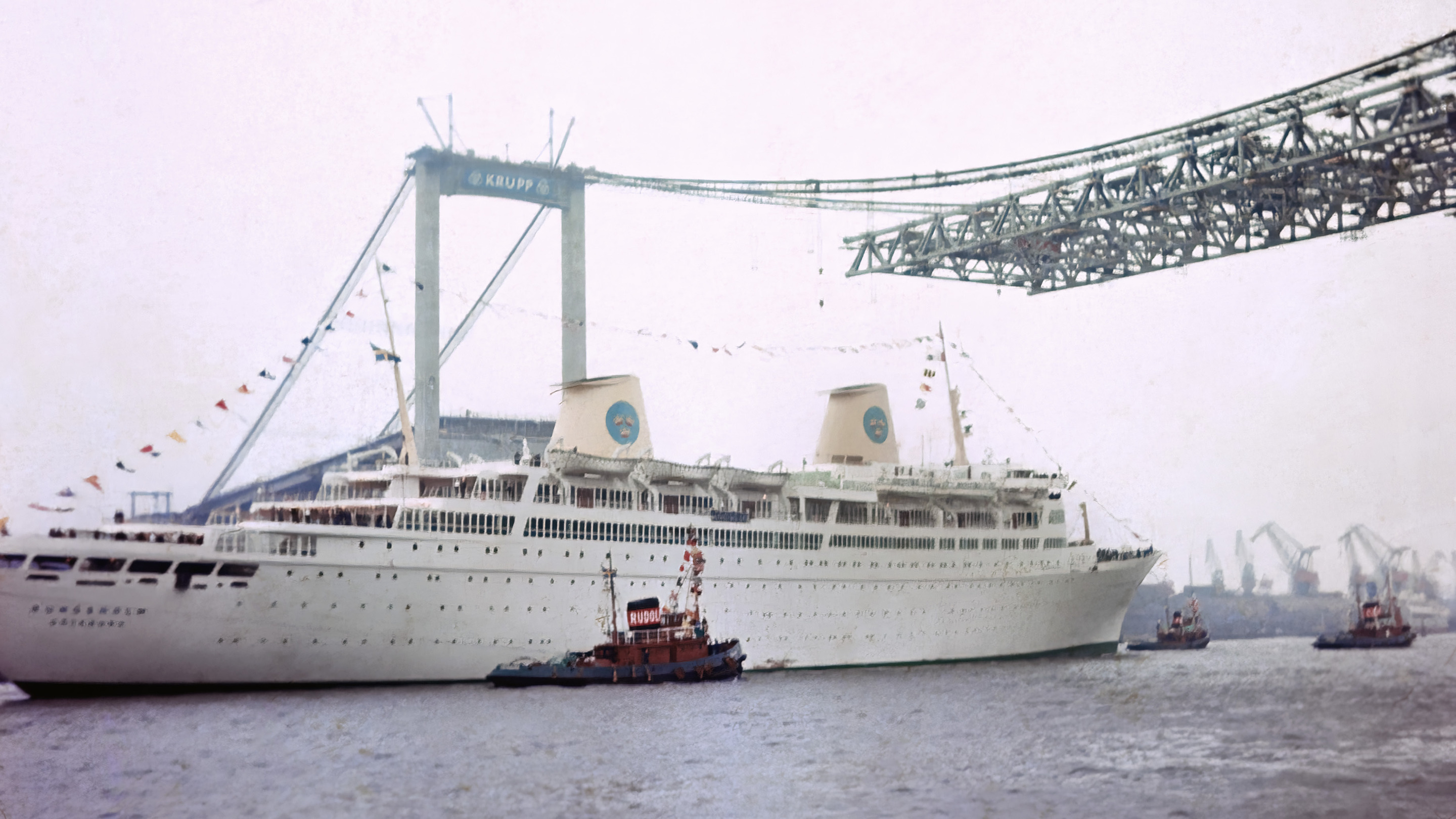 M/S Kungsholm IV anlöper Göteborg mars 1966 Foto: Per-Åke Olsson