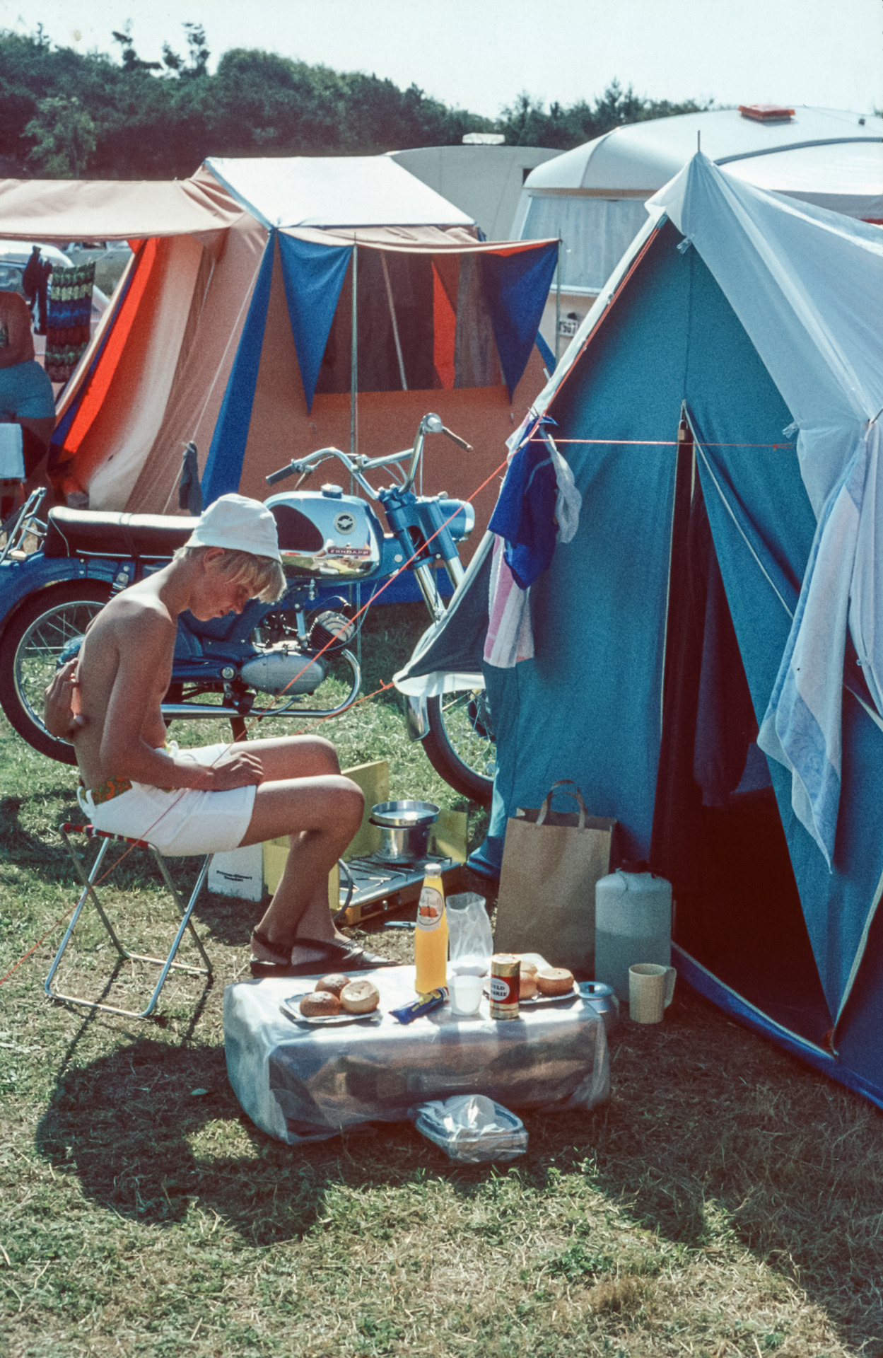 Sommaren 1968 åkte min kompis Ingemar och jag med våra mopeder till Marias Camping i Mellbystrand för en veckas camping. En sträcka på drygt 16 mil enkel resa. Vi var två ordentliga killar och hade med oss allt som vi kunde tänkas behöva (och lite till...). Förutom tält, luftmadrasser och sovsäckar hade vi också ett rejält 2-lågors Primus gasolkök, kastruller, vattendunk, diskbalja mm (väckarklocka... ). En inplastad resväska fick utgöra bord ute och inne. Mitt 6-mannatält, inhandlat på postorder från AB Bröderna Claesson i Kungälv under min scoutkarriär, fick förstärkas med plasttak för att inte det skulle regna in. Till frukost blev det kokt ägg, smaksatt med Kalles kaviar. Till detta färska rundstycken inköpte i campingens kiosk. Vi avslutade med "kokekaffe" och Mariekex.