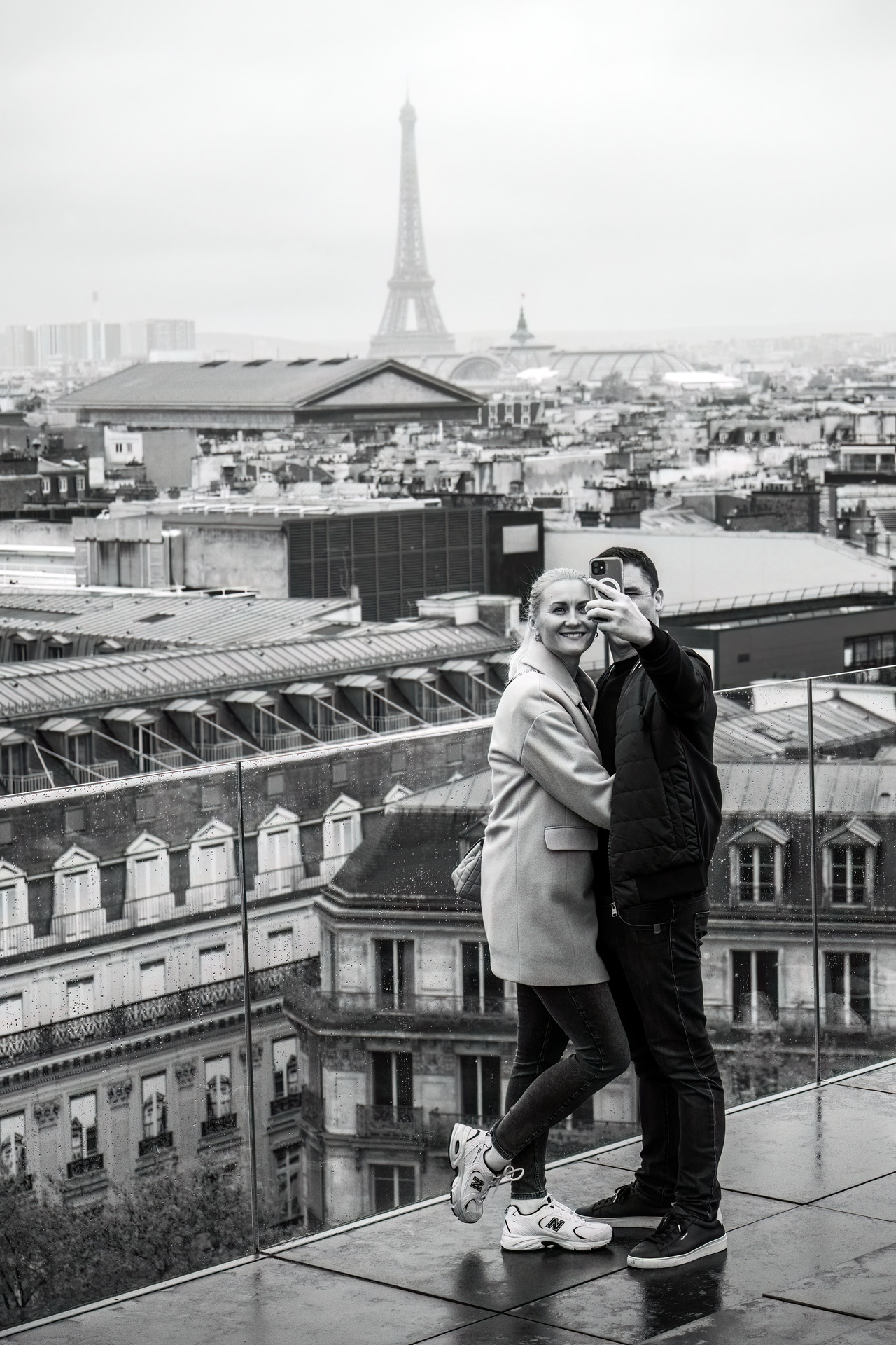 Okänt romantiskt par förevigar sitt besök i Paris med en selfie