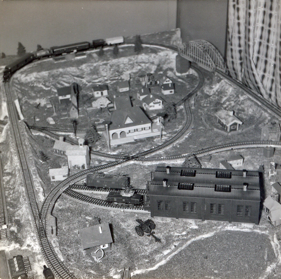 Min barndoms tågbana av märket Märklin sysselsatte mig under många många timmar, under många år. Dels att bygga och koppla, vilket lärde mig mycket som jag haft nytta av i senare ålder, och dels att köra tågen. Banan bestod av en spånskiva vilken vi hade täckt med säckväv som bestrukits med gips. Färgat sågspån limmades på gipsytan för att illustrera olika markytor. Fick lite hjälp av pappa i början av bygget. Här fanns stora möjligheter att vara kreativ och skapa såväl landskap som elektriska kopplingar. Bäst var att banan aldrig blev färdig utan ständigt kunde utvecklas. Går dagens barn och unga miste om något framför sina skärmar??